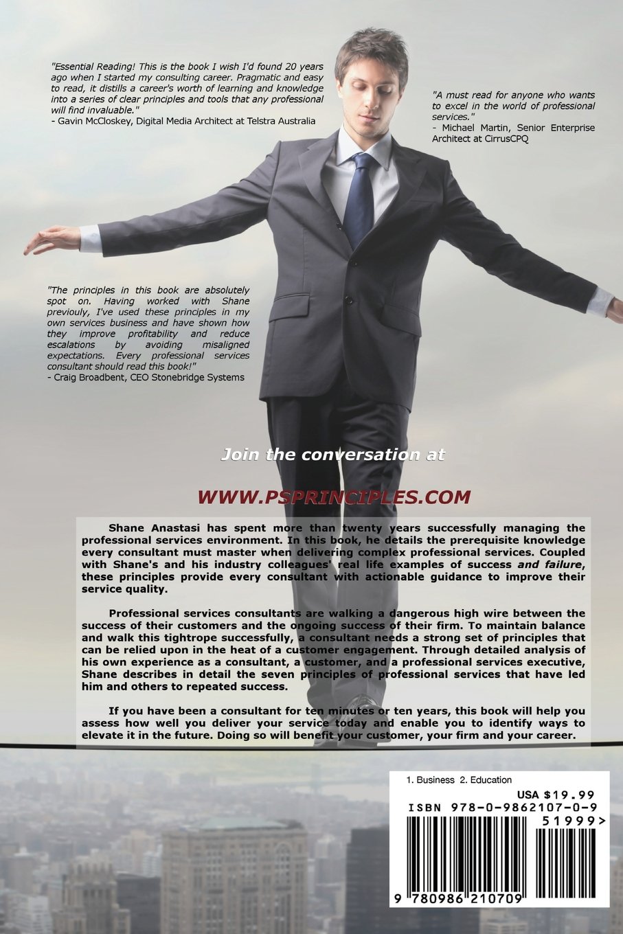 The Seven Principles of Professional Services details the prerequisite knowledge that every consultant must master when delivering complex professional services. Coupled with the author’s and his industry colleagues’ real life examples of success and failure, these principles provide every consultant with actionable guidance to improve their service quality. Professional services consultants are walking a dangerous high wire between the success of their customers and the ongoing success of their firm. To maintain balance and walk this tightrope successfully, a consultant needs a strong set of principles that can be relied upon in the heat of a customer engagement. Through detailed analysis of his own experience as a consultant, a customer, and a professional services executive, Shane describes in detail the seven principles of professional services that have led him and others to repeated success. If you have been a consultant for ten minutes or ten years, this book will help you assess how well you deliver your service today and enable you to identify ways to elevate it in the future. Doing so will benefit your customer, your firm and your career.
