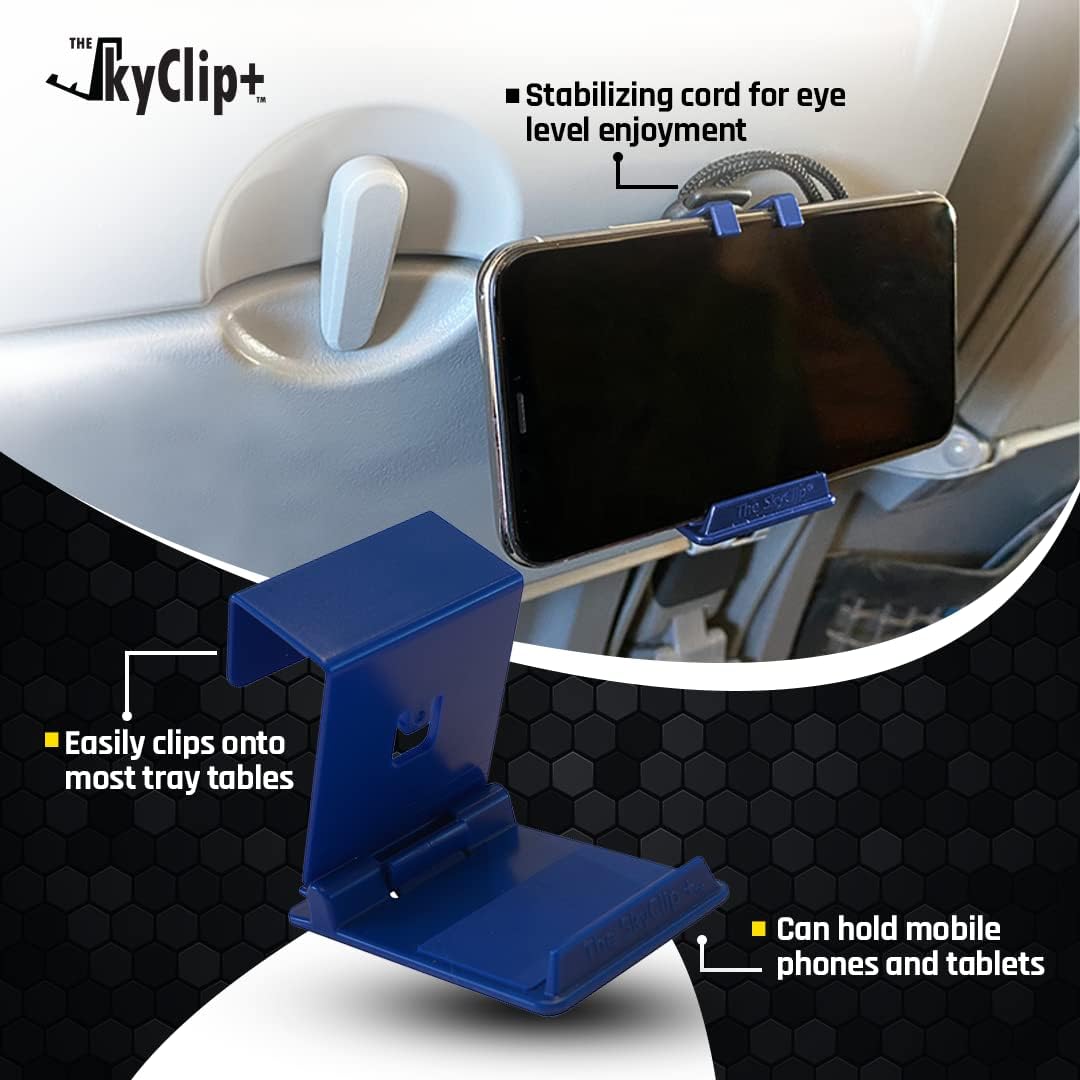 The SkyClip+ Phone & Tablet Holder for Air Travel, Home and Office Use – Inflight Phone Mount & Stand Compatible with iPhone, Android, Kindle and Tablets – Ultimate Travel Accessory (Blue)