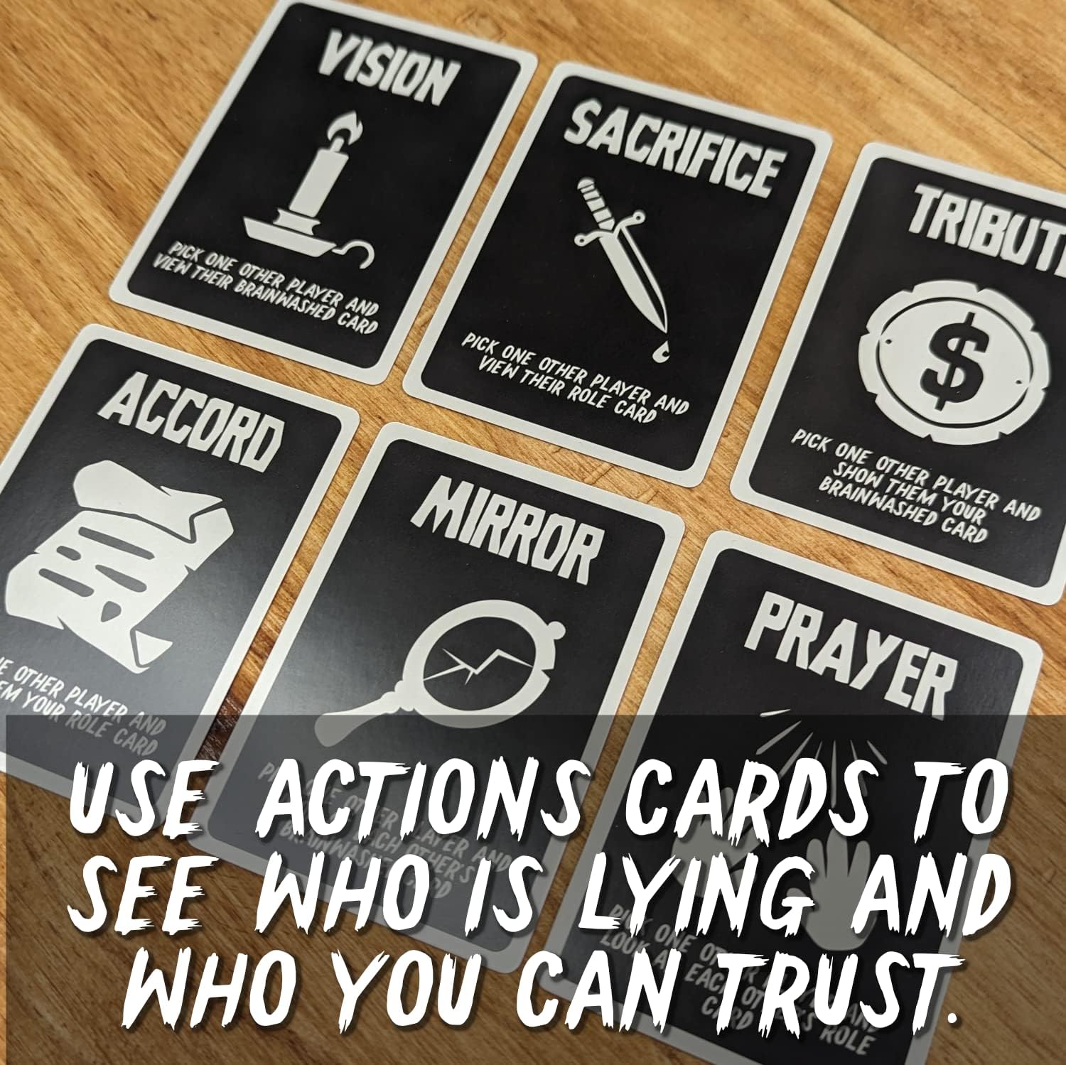 These cards will determine if you are a Villager, Brainwashed, or the Cult Leader.