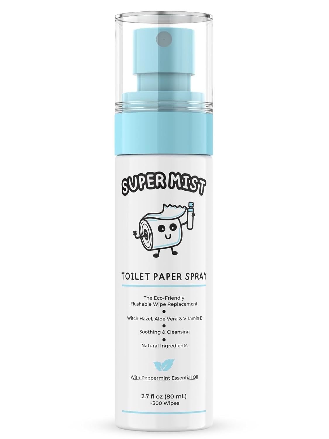 Toilet Paper Spray (2.7 fl oz/300+ Uses) – Upgrade Toilet Paper into a Gentle, Cleansing Wipe | Soothing Formula with Witch Hazel, Aloe Vera & Refreshing Peppermint Oil | Travel Friendly