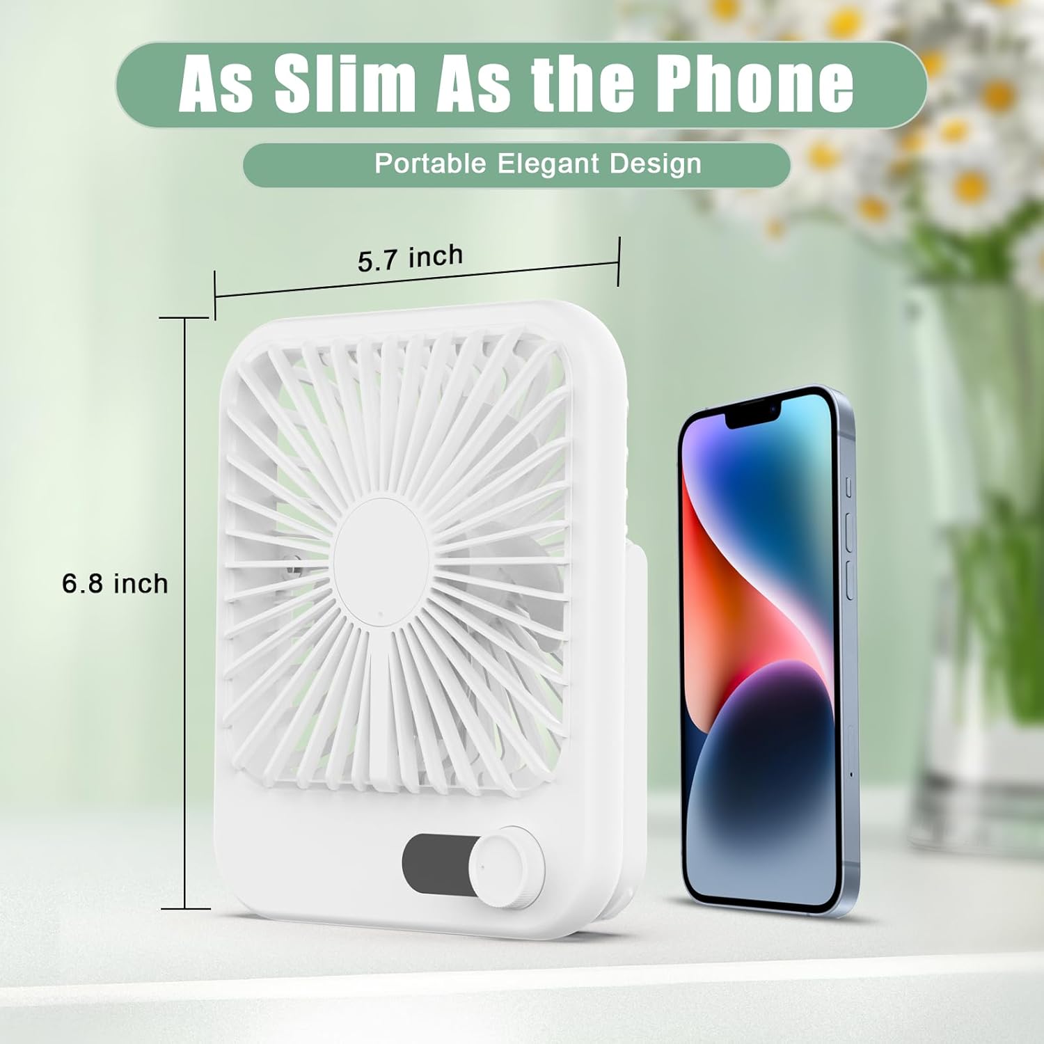 Travel Fan for Sleeping, 6.8″ Small Portable Fan Rechargeable Battery Powered, 100 Speeds Personal Mini Desk Fan for Office Bedroom, Cruise Ship Beach Vocation Travel Essentials, White