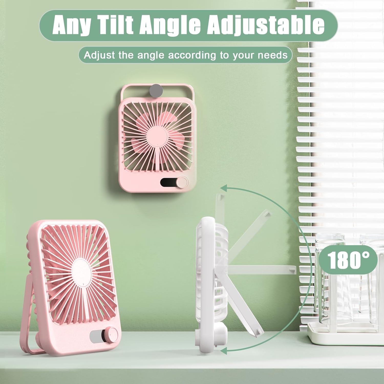 Multi-Angle Cooling: 180° adjustable head pivots from desktop breeze to wall-mounted airflow. Sturdy triangular base prevents tipping even at max speed – perfect for desks, nightstands, or dorm rooms.