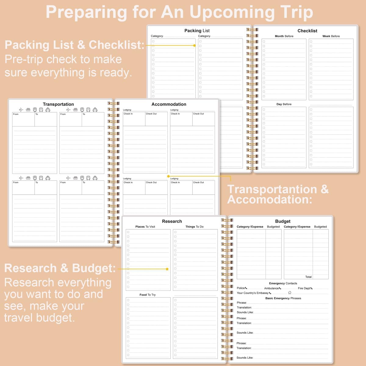KEEP YOUR TRAVEL ORGANIZED – This travel notebook will help you to plan your itinerary before start your trip, record trip journal and plan for your next travel. It can help you plan your trip effectively and maximize your time at each destination. By making a travel packing list, you’ve got all the important details sorted out. This trip organizer will help you relax and enjoy your trip, saving you a lot of time.