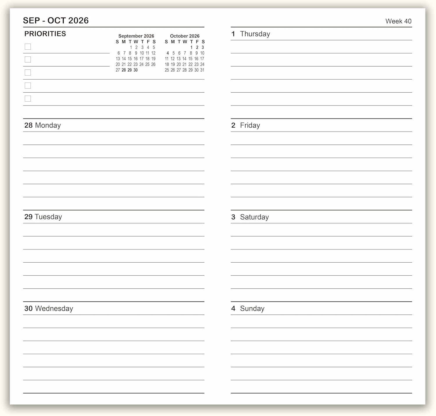 All weekly and monthly pages are dated design.
