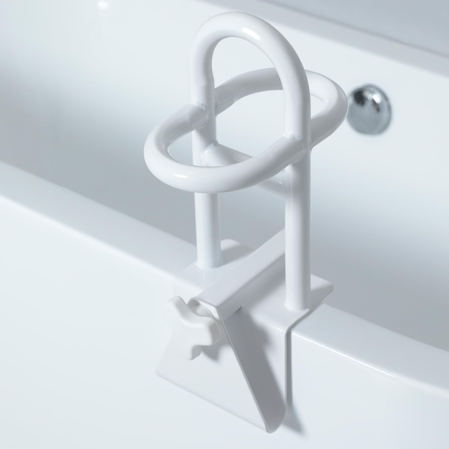 Sleek, Modern Elegance: Crafted with a white powder-coated stainless steel frame, this lightweight rail blends seamlessly with any bathroom decor. Its ambidextrous, three-handle layout is both practical and stylish, adding a touch of sophistication while being easy to transport or reposition.