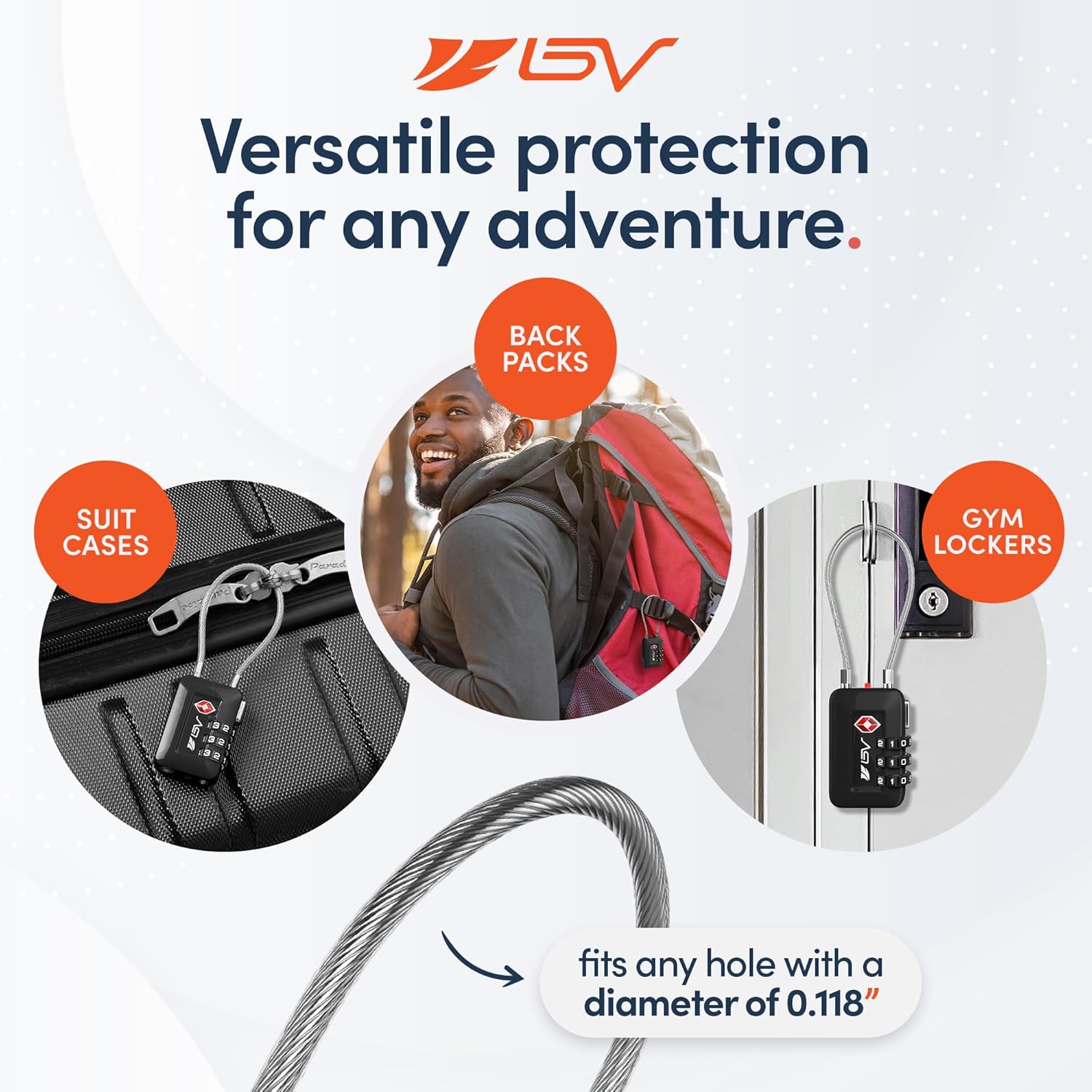 Resettable to 1,000 Possibilities – Set a combination for your backpack lock that you won’t forget from 1.000 possible combinations. BV travel locks tsa approved with multiple possibilities.