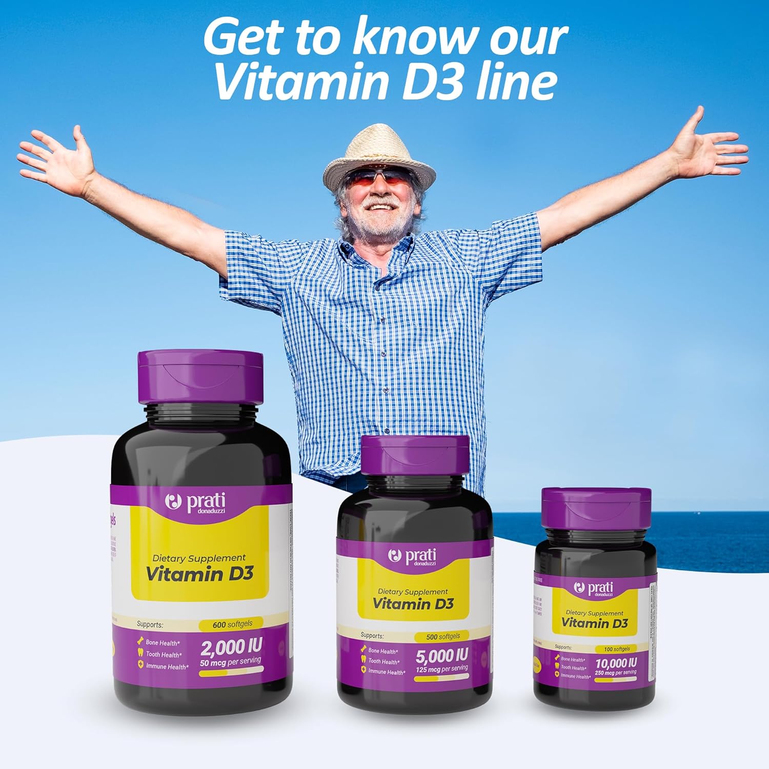 【SUPPORTS DAILY WELL-BEING】Vitamin D3 plays a key role in calcium absorption and defensive health support, which is essential for everyone, especially for those with limited sun exposure or dietary intake. Fill this nutrient gap by supplementing your diet with Prati Donaduzzi Vitamin D3 5,000 IU.