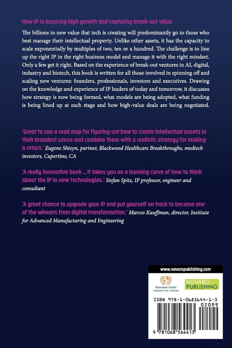 ‘A really innovative book … it takes you on a learning curve of how to think about the IP in new technologies’, Stefan Spitz, IP professor, engineer and consultant