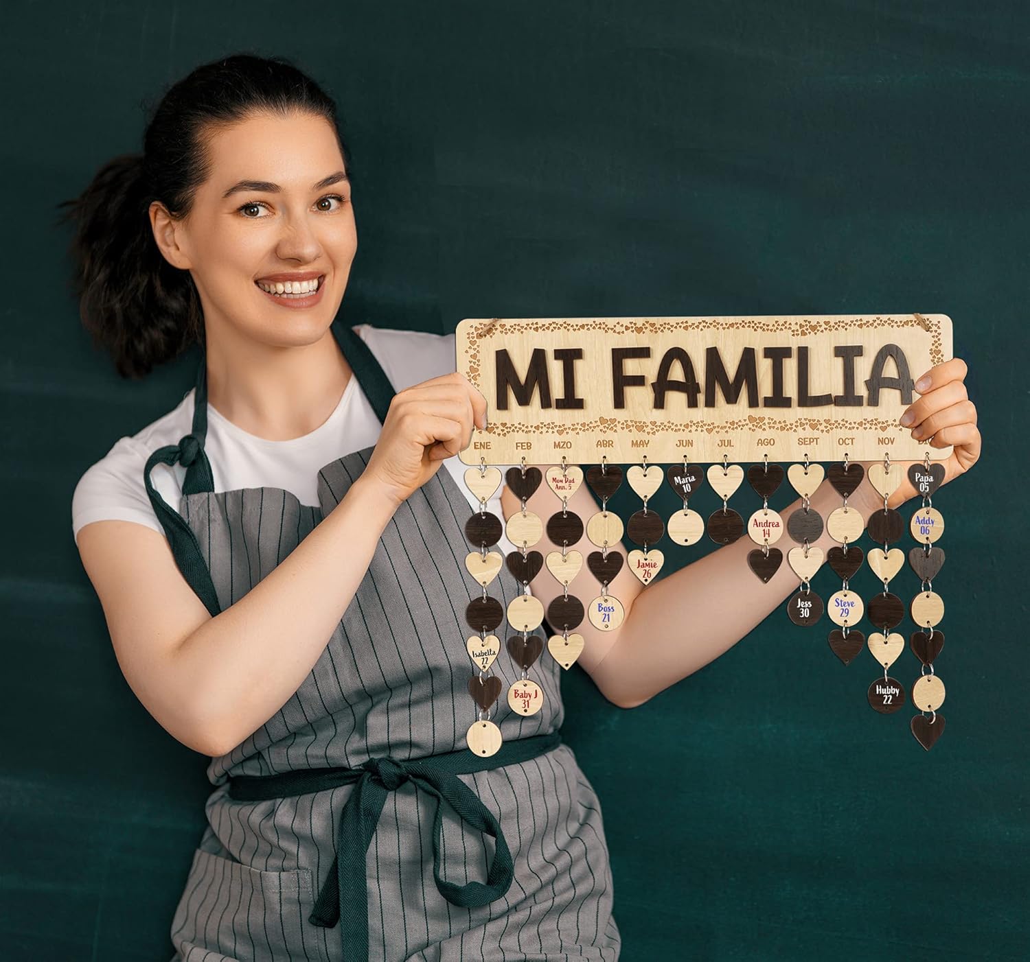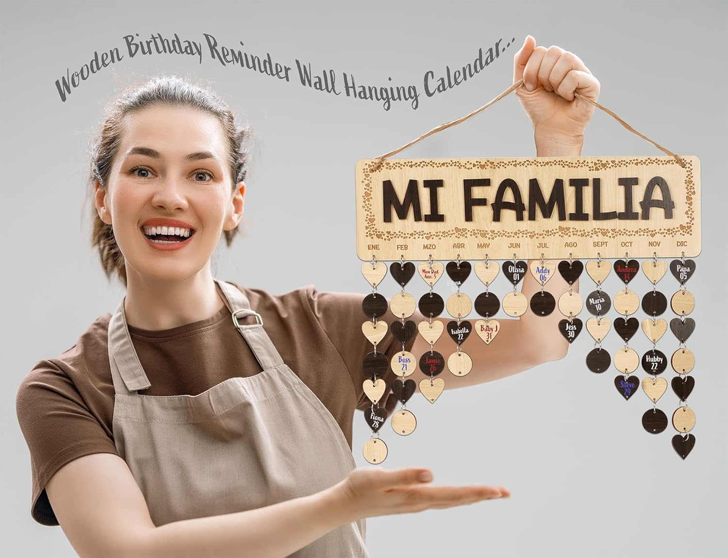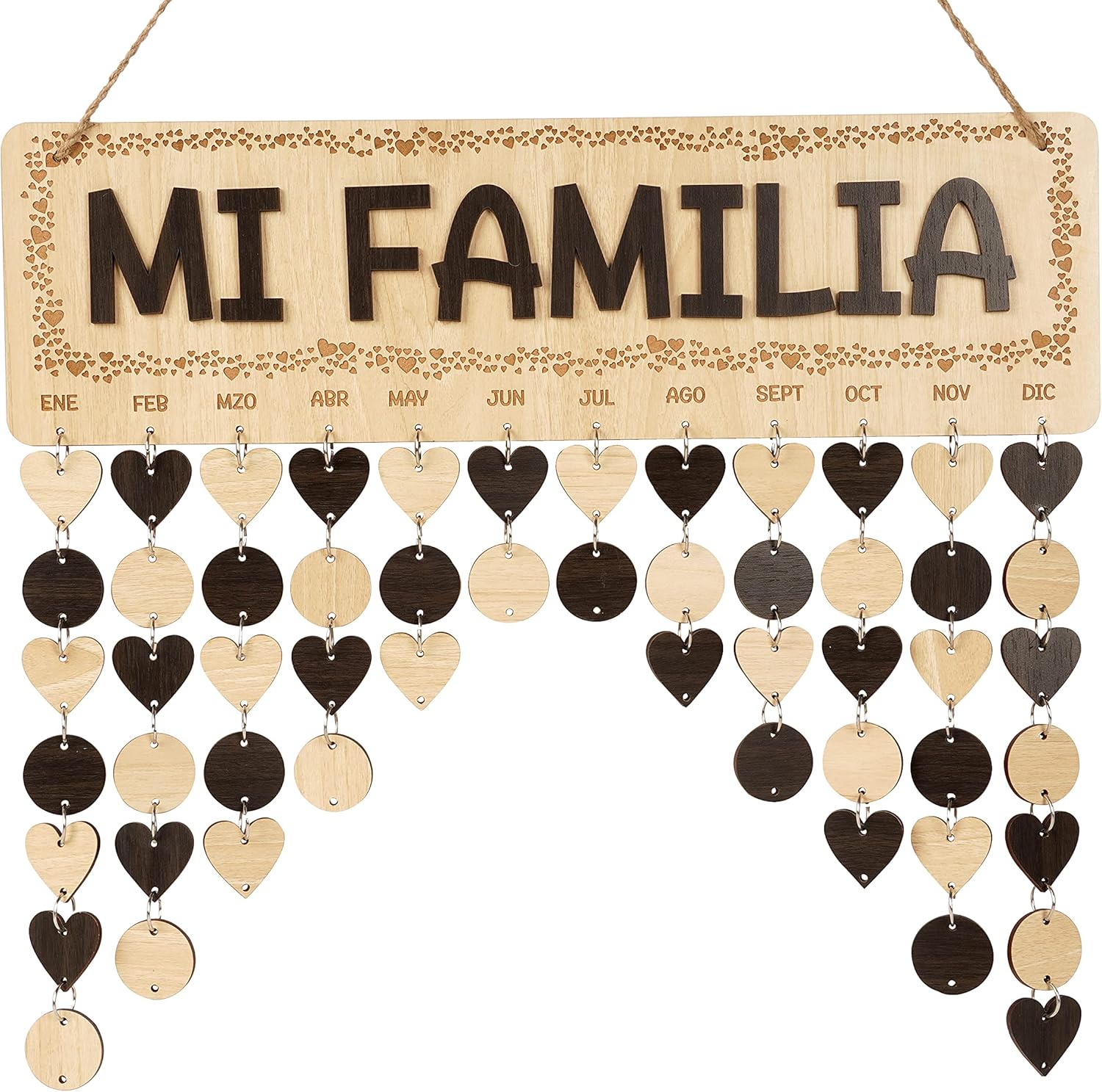 Wooden Birthday Calendars with Hanging Dates DIY Birthday Tracker Plaque Wall Hanging, Farmhouse Decor- Gift for Grandparents- Dates to Remember Calendar,MI FAMILIA-V6N