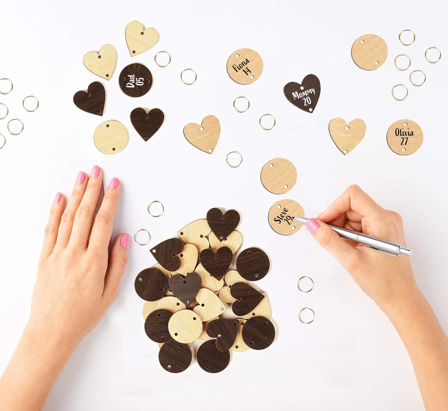 All you need to do is write the names of your friends or family members and special dates on the Pre-drilled round or heart tags, then use silver metal rings to link them all together.