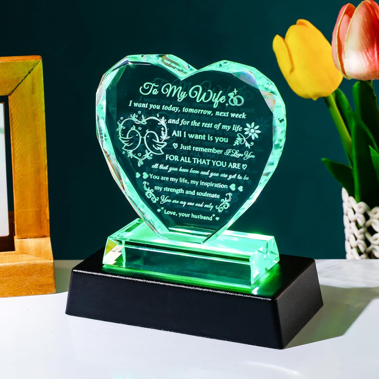YWHL Gifts for Wife from Husband Birthday Gifts for Wife Crystal Keepsake Anniversary Present with Colorful LED Base Romantic I Love You Gift for Her on Valentines Mothers Day Christmas