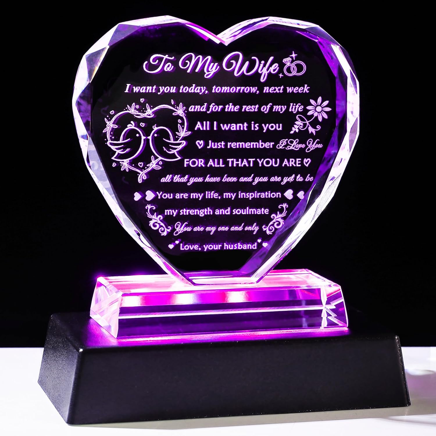 Romantic Wife Gifts From Husband: Every word of the heart-shaped crystal is full of love from a husband to his wife. When you don’t know what gift to give to your wife, this gift can fill your wife with warmth and surprises, and let her feel your true love. Perfect as a gift for Valentine’s Day, Birthday, Anniversary, Mother’s Day, Wedding or Christmas