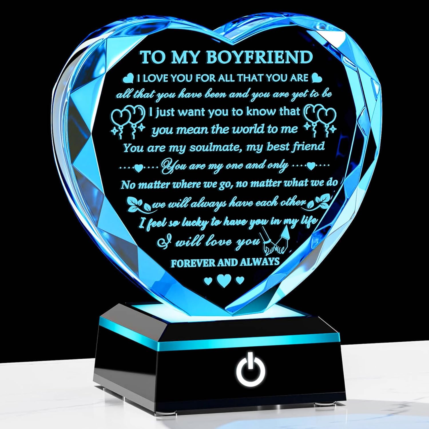 YWHL Romantic Gifts for Boyfriend with Colorful LED Base Anniversary Birthday Gifts for Boyfriend Him from Girlfriend Crystal Heart Keepsake to My Boyfriend Gifts for Valentine Christmas