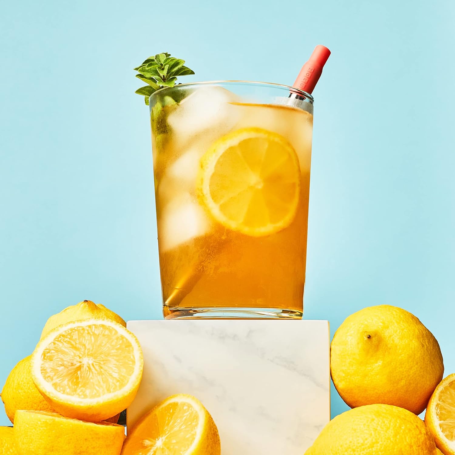 Hand holding drink with ZOKU strawHand holding drink with ZOKU straw