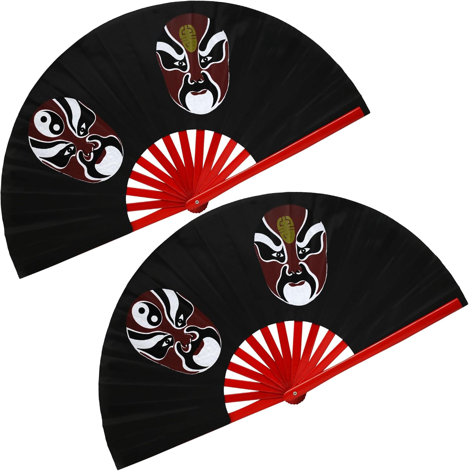 ZooBoo Bamboo Tai Chi Fan with Peking Opera Mask Art – Handcrafted Kung Fu Fan for Martial Arts, Cultural Decor, Performance